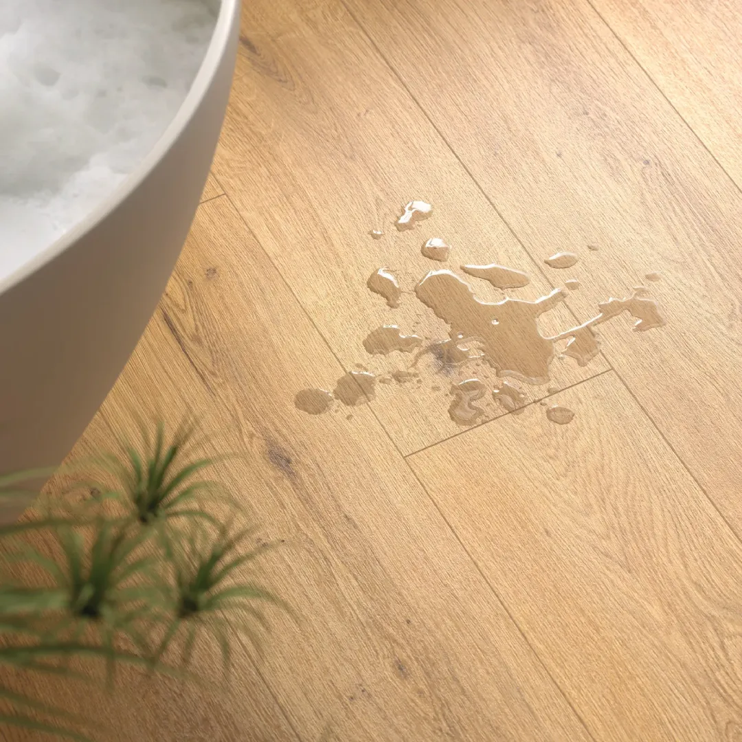 U našoj ponudi nalazi se i NatureSense Aqua+ – pod koji je projektovan da bez teškoća izdrži vodu i svakodnevno intenzivno korišćenje. Zahvaljujući posebnoj formuli protiv bubrenja nosive ploče, u kombinaciji sa vodootpornim sistemom polaganja Aqua CLIC it!, ovaj pod predstavlja odlično rešenje za prostore koji zahtevaju češće čišćenje i visoku izdržljivost.