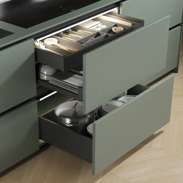 Emuca Taika je uzdužna LED rasveta sa elegantnim i kompaktnim dizajnom za osvetljavanje unutrašnjosti fioka ili ormarića. Ima integrisani senzor koji uključuje rasvetu kada se fioka otvori i gasi kada se zatvori. Takođe, ima visoku energetsku efikasnost koja obezbeđuje jako i ujednačeno svetlo.
