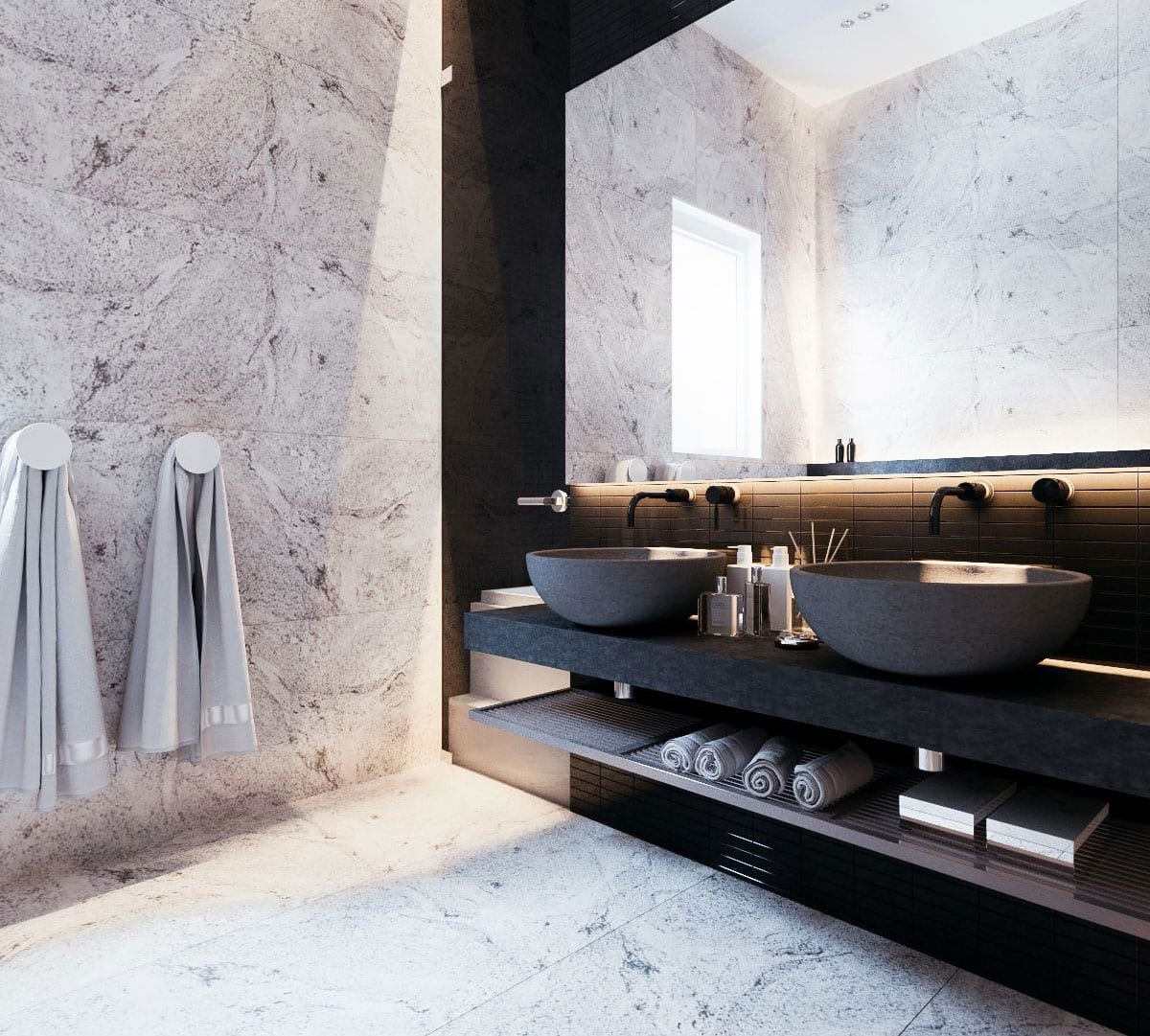 Kada je kamen u pitanju, kameni opseg je veoma širok da biste se lako odlučili i izabrali pravi i često je presuđujući faktor nijanse boja koje želimo da imamo u našem kupatilu. Dok je takođe u izboru važna i učestalost održavanja koja će biti potrebna za određenu kamenu površinu, a i boju.