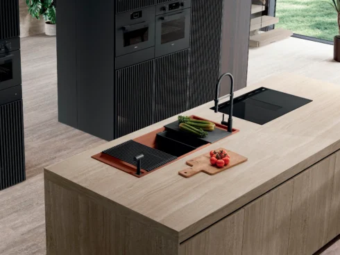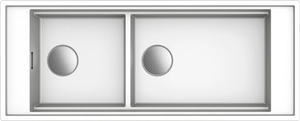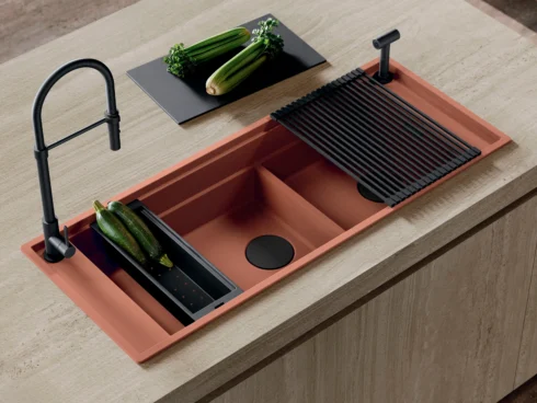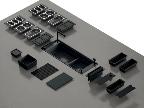 Kruna koncepta radne stanice: dve posude sa niskom pregradom, tri radna nivoa i dvostruko upravljanje vodom stvaraju dve nezavisne radne stanice koje se mogu koristiti istovremeno.‎ Čitav niz multifunkcionalnih dodataka interaguje kako bi olakšao zadatke pripreme, nudeći sve alate potrebne da izvučete svog unutrašnjeg kuvara.‎