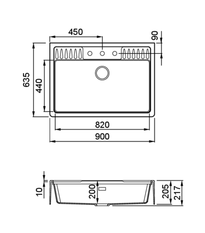 Kliknite na sliku za pregled.Dimenzije (mm): 900 x 635 Element (mm): 900 Dimenzije za ugradnju (mm): informacije se dobijaju u pakovanju Dubina korita (mm): 200 Tip ugradnje: Nasadna Pozicija: Univerzalna PREUZMITE UPUTSTVOInformacije za poručivanjeŠifra artiklaObradaLKS90086BLACK K86LKS90096WHITE K96